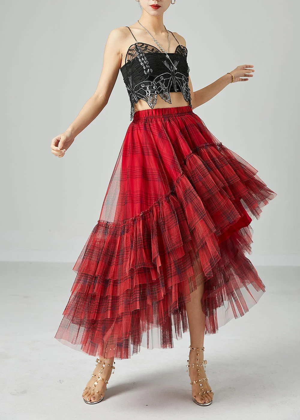 Beautiful Mulberry Asymmetrical Patchwork Wrinkled Tulle Skirt Summer