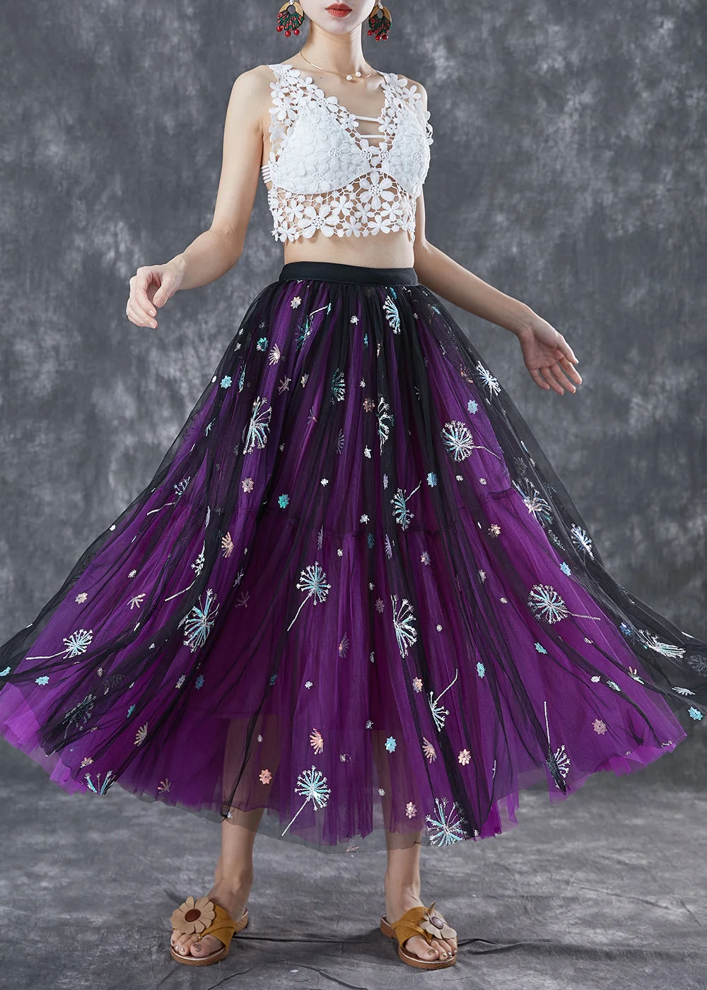 Bohemian Purple Dandelion Embroideried Wear On Both Sides Tulle Skirt Summer