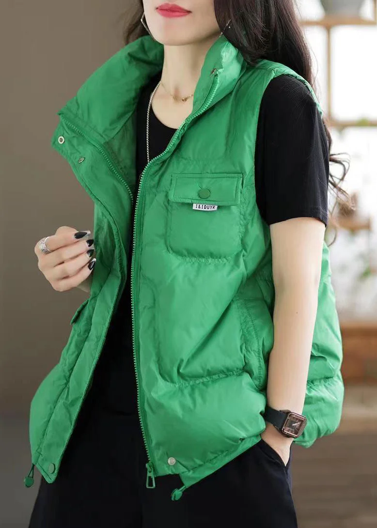 Casual Green Zip Up Pockets Patchwork Duck Down Waistcoat Sleeveless