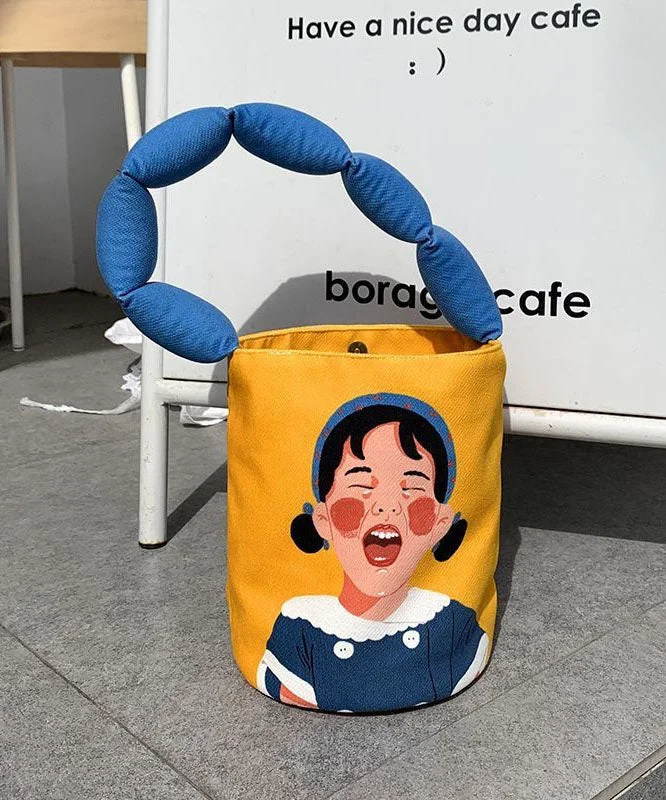 Casual Yellow Cute Girl Print Patchwork Canvas Tote Handbag