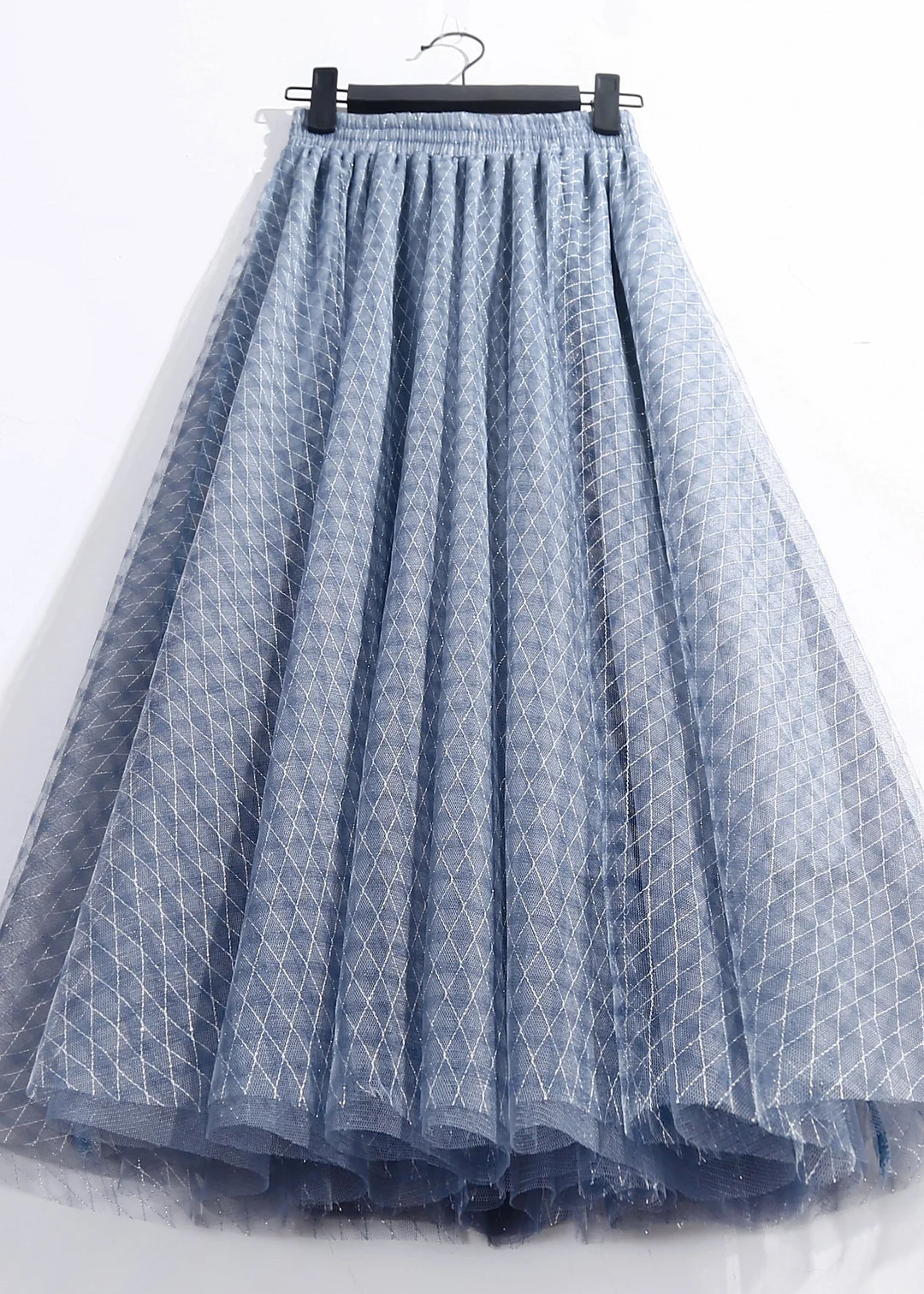 Elegant Blue Elastic Waist Plaid Tulle A Line Skirts Spring