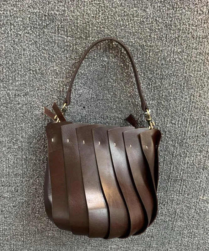 Fine Coffee Patchwork Calf Leather Tote Handbag
