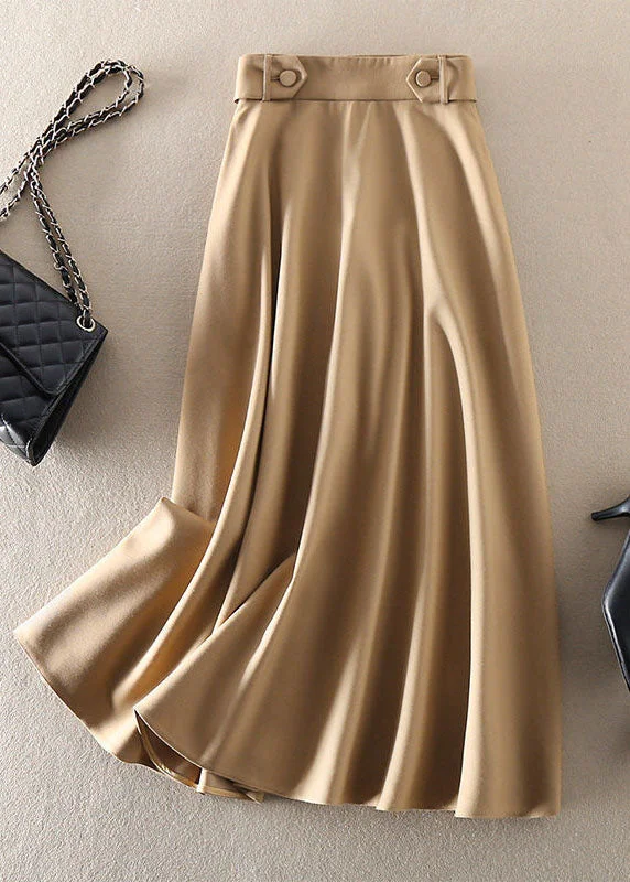 French Khaki High Waist Exra Large Hem Cotton A Line Skirt Spring