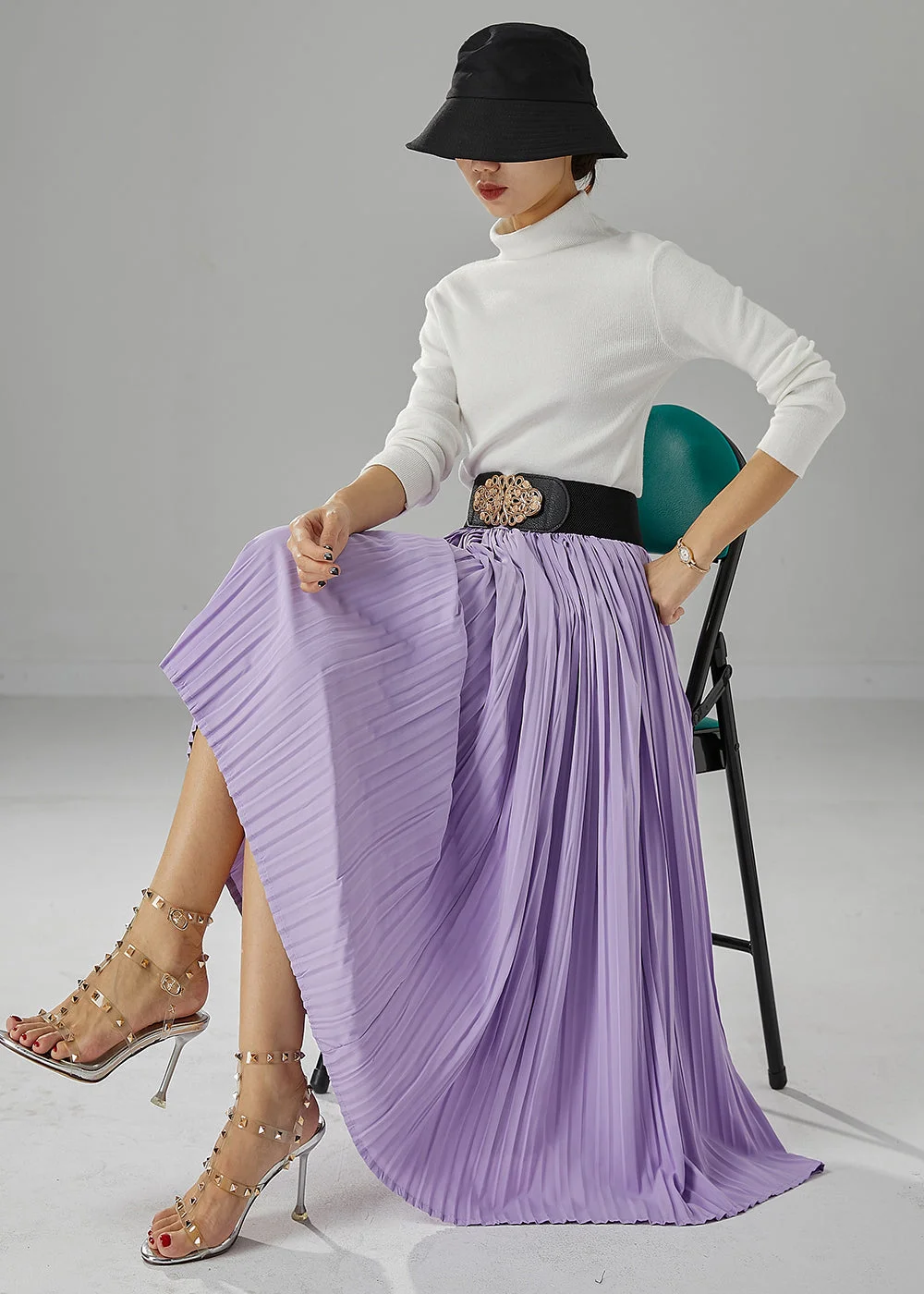 Italian Purple Exra Large Hem Chiffon Pleated Skirt Fall