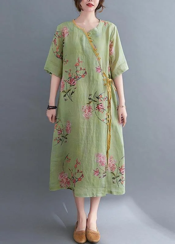 Loose Green Print Button Maxi Summer Chiffon Dress