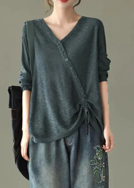 Navy drawstring Patchwork Knit Sweater Winter