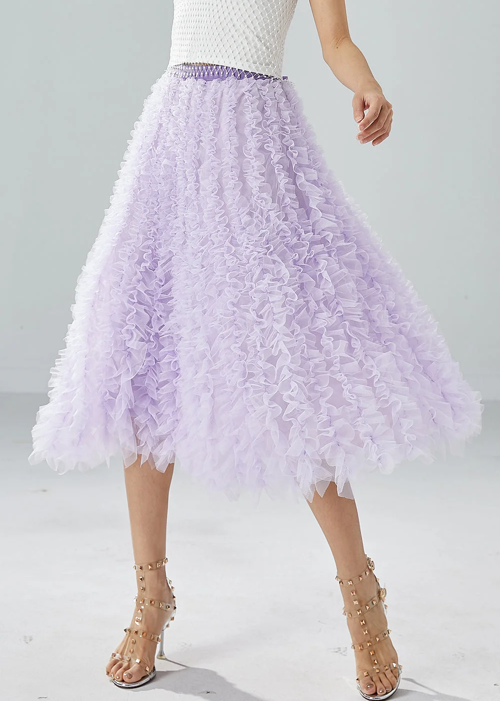 Organic Purple Elastic Waist Ruffled Tulle Holiday Skirt Summer