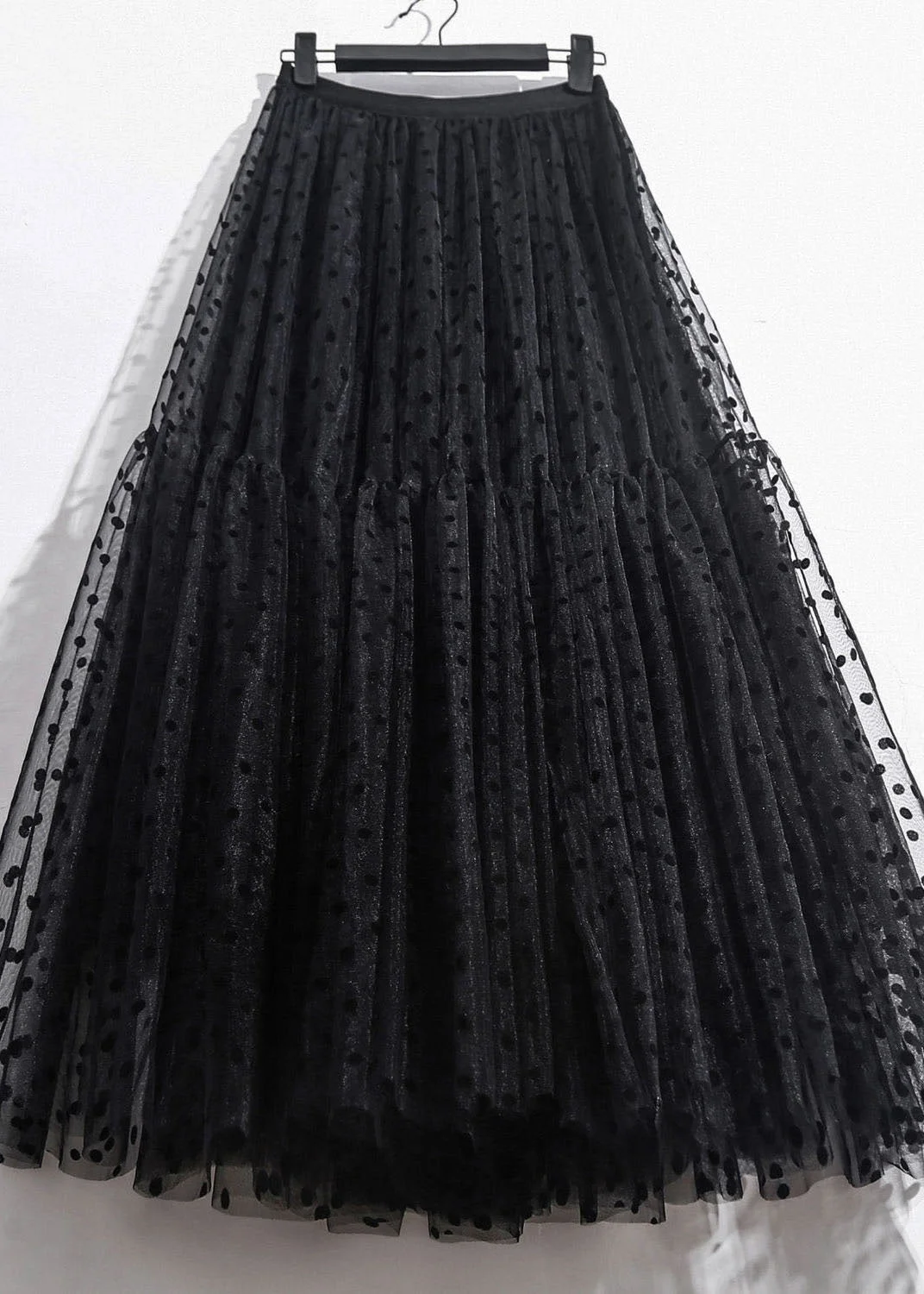 Vintage Black Wrinkled Patchwork High Waist Tulle Skirt Spring